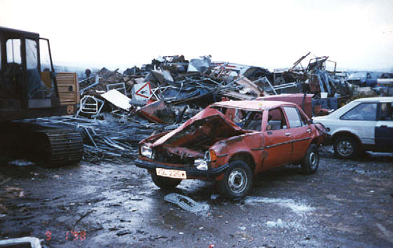 First, take your car along to the local scrap dealers. Ask him to squish it for you. You will find that some dealers will even pay you for the privelidge! I got £25 for my old opel ascona.